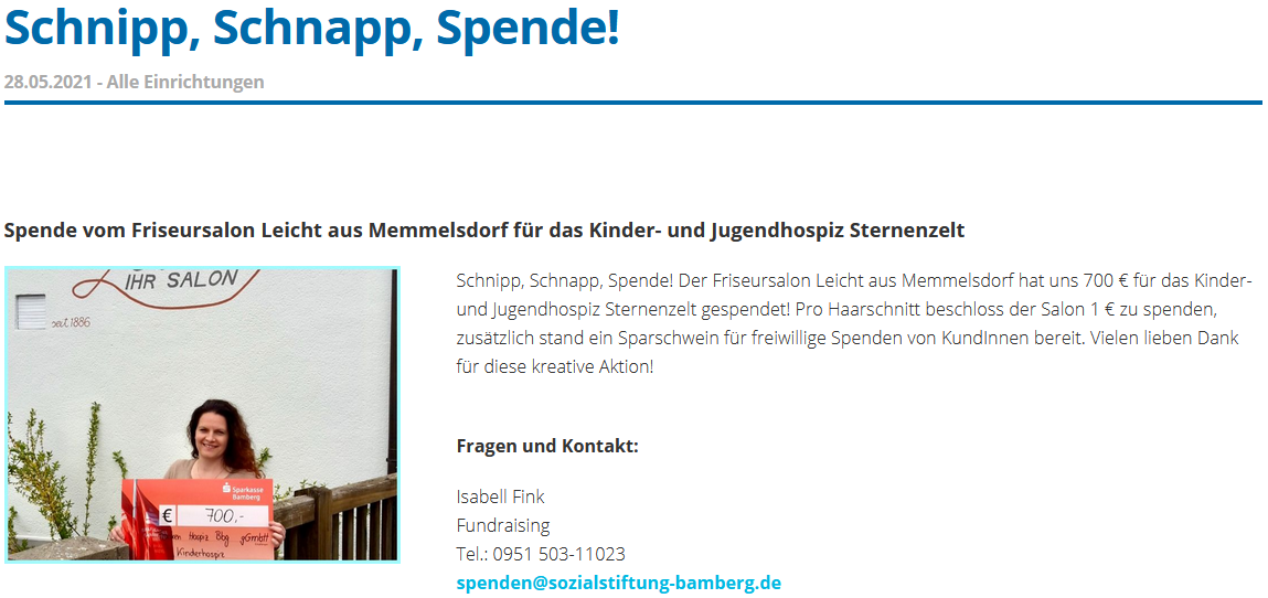 Wie sie wissen, sammelten wir wieder in der Weihnachtszeit Spenden Für das Kinder- und Jugendhospitz. Auf diesem Weg möchten wir uns nochmal bei unseren Kunden bedanken, da eine betrachtliche Summe über 815€ zusammen kam!